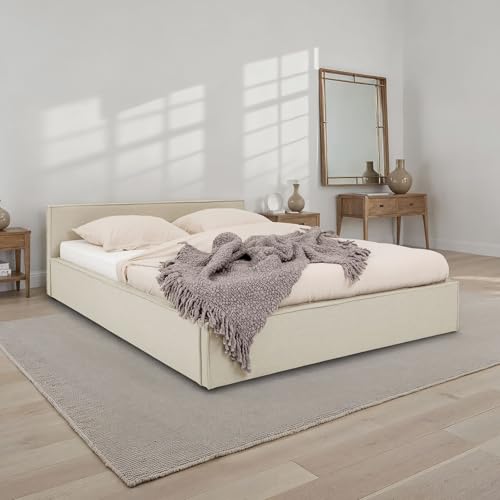 • Zeitloses Design: Das moderne, geradlinige Bettgestell überzeugt mit seiner eleganten Optik in Beige und passt sich harmonisch unterschiedlichen Einrichtungsstilen an