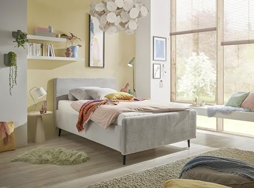 Stella Trading Peach Polsterbett Bettgestell 120×200, Silber – Modernes Einzelbett in Cord-Optik...